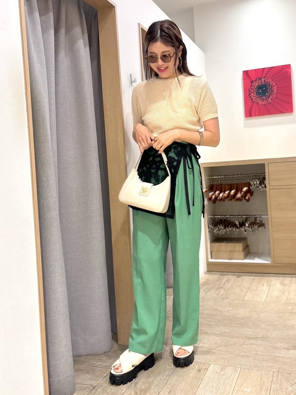 ayukami(VIS ジョイナス横浜)のハンドバッグ「【新色追加】【180℃美人見え】ハンドルリボンワンショルダーバッグ」を使ったコーディネート