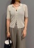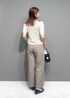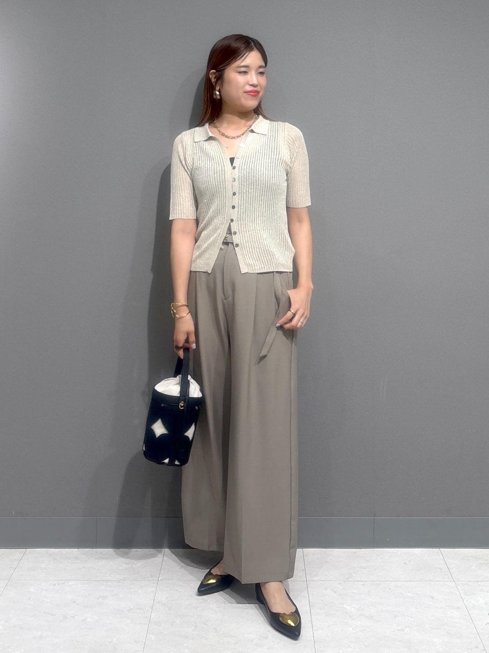 ベージュ系のグラデーションコーデで 落ち着いた大人な雰囲気に。 小物はブラックで統一して締めました。 シンプルながらも、ラメ入りのカーディガンが華やかさをプラスしてくれます。 ※記載のないものはスタッフの私物です。