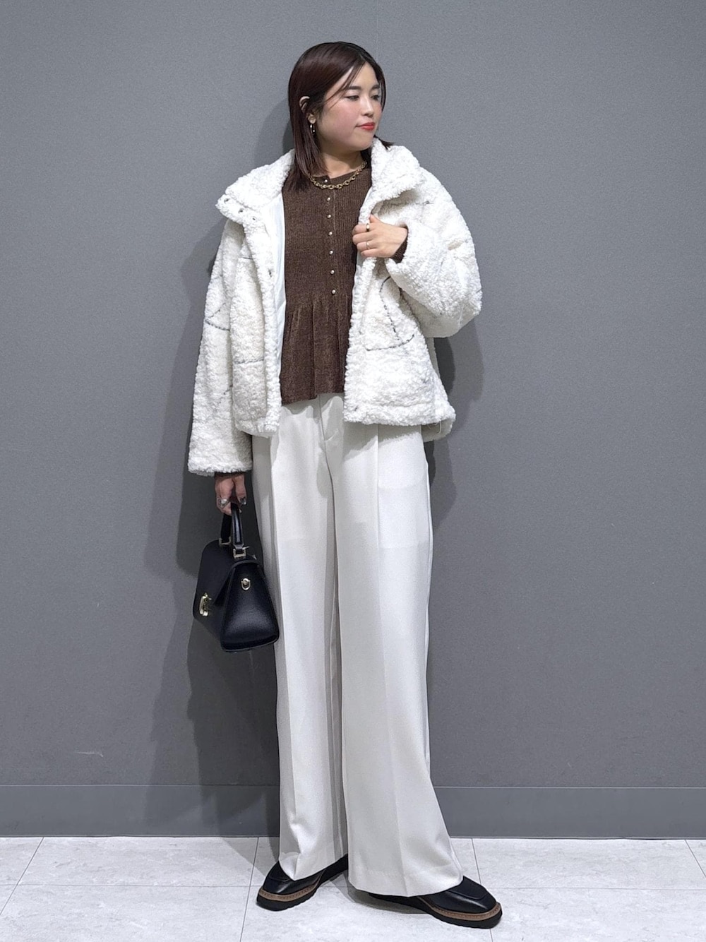 ホワイトとブラウンでまとめた 上品かつ清潔感のあるスタイリング。 クリスマスにもおすすめのコーディネートです♡ アウターにはさりげなくハートの刺繍が♡ ※記載のないものは私物です。
