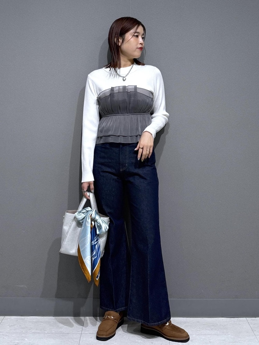 大人気のビスチェドッキングから 新色登場です! 春先にもぴったりなホワイトを基調とした爽やかなカラー◎ デニムと合わせて今から春まで着られるスタイリング♡ ※記載のないものは私物です。