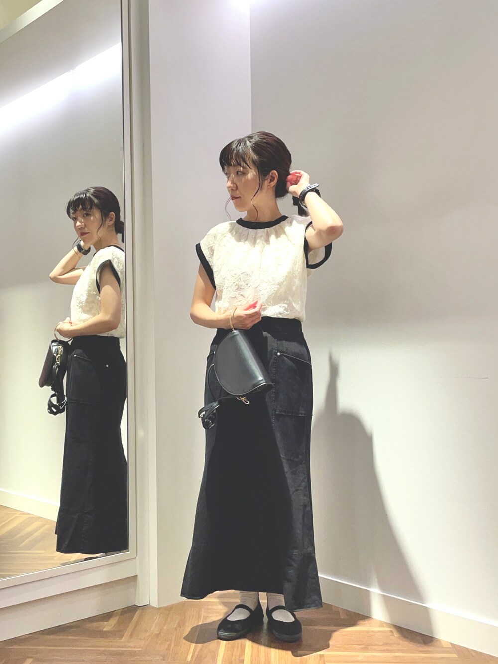 あゆこ(natural couture)のシャツ/ブラウス「バックリボンフレンチスリーブブラウス」を使ったコーディネート