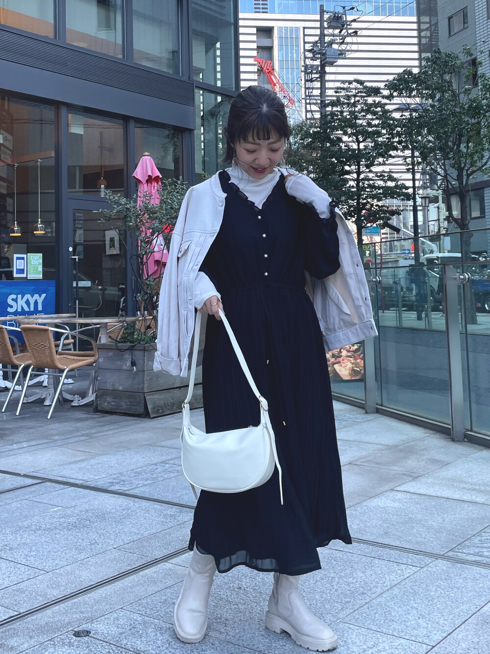 あゆこ(natural couture)のワンピース「【mamamo】パール釦シフォンプリーツワンピース」を使ったコーディネート
