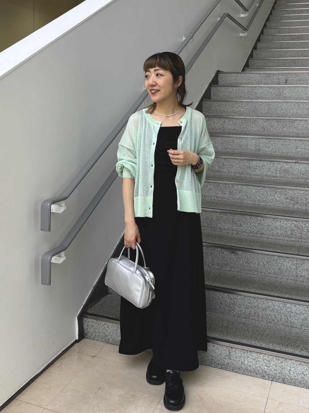 着心地◎なカットジョーゼットのキャミワンピース 伸縮性があり、落ち感もあるのでボリュームも出過ぎずすっきり着こなせます アジャスターで長さ調整もできます カーデは接触冷感機能付き サラッとした着心地でゆったりめのサイズ感も羽織やすいです