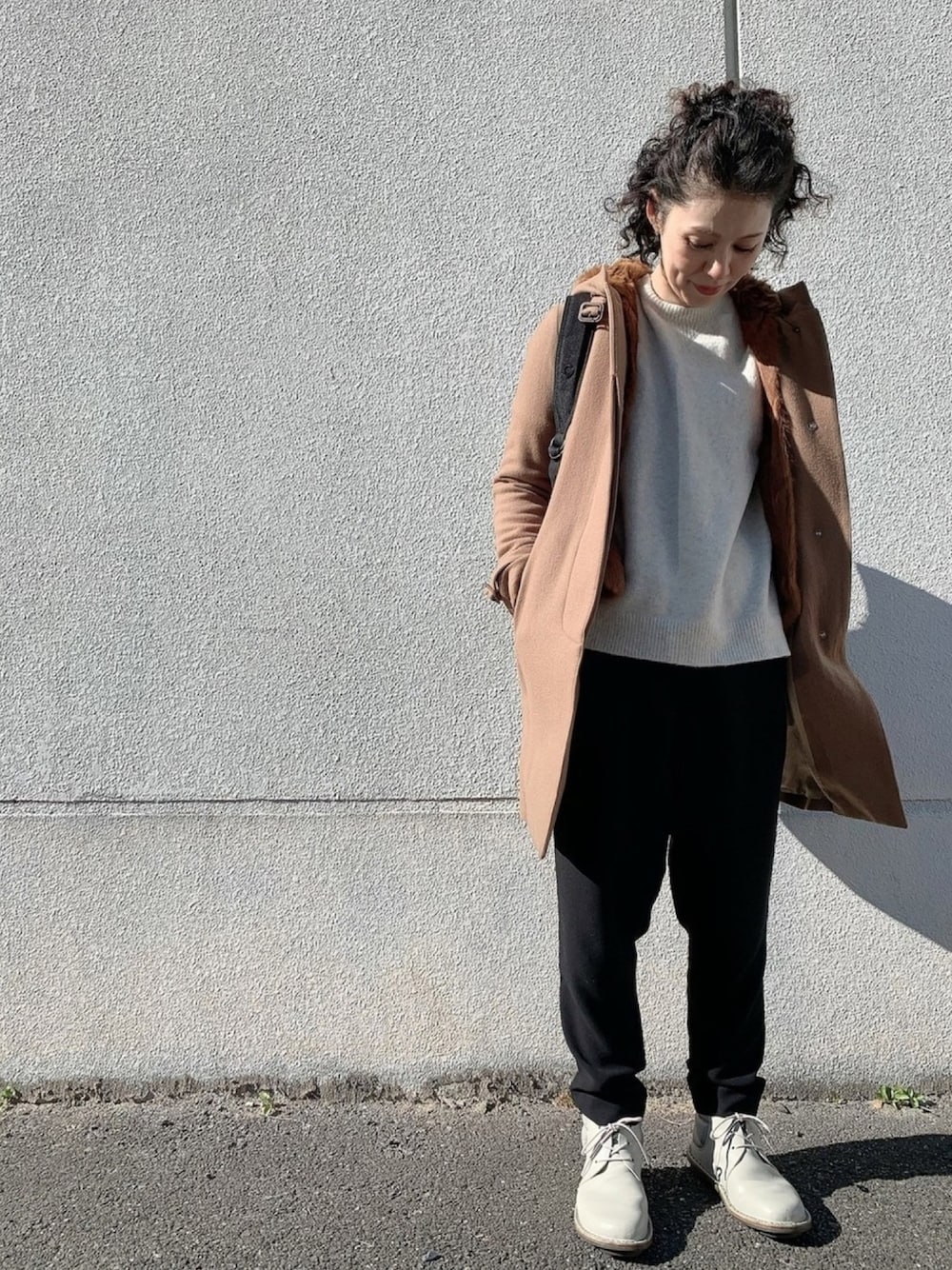 白いニットは UNIQLO JW ANDERSONの スフレヤーンクルーネックセーター オフホワイト Mサイズ サイズ感良くて合わせやすいのでよく着てます。 コートはトラディショナルウェザーウェア🧥 内側にはファー付いてて、もう何年もお気に入りで着てる。 来年はもう無理か。って毎年新しいコートを買ってはまだ着てます😂