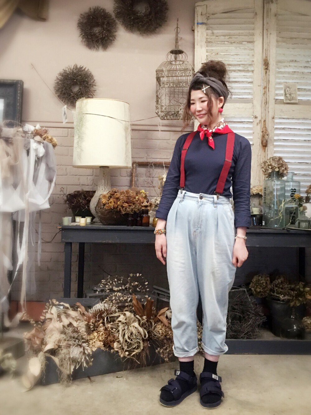 はい。今日もサスペンダーです♪ 今日は赤をポイントに…♪
