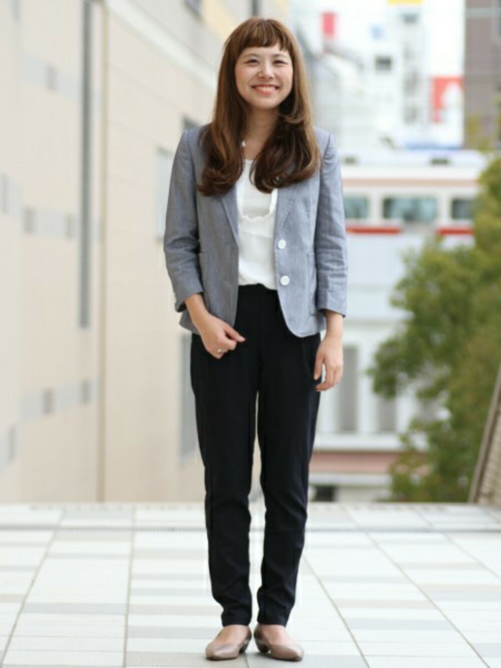 さらりと羽織ることができるコットンリネンのシャンブレージャケット。きれい目に大人カジュアルにコーディネートしてみました。