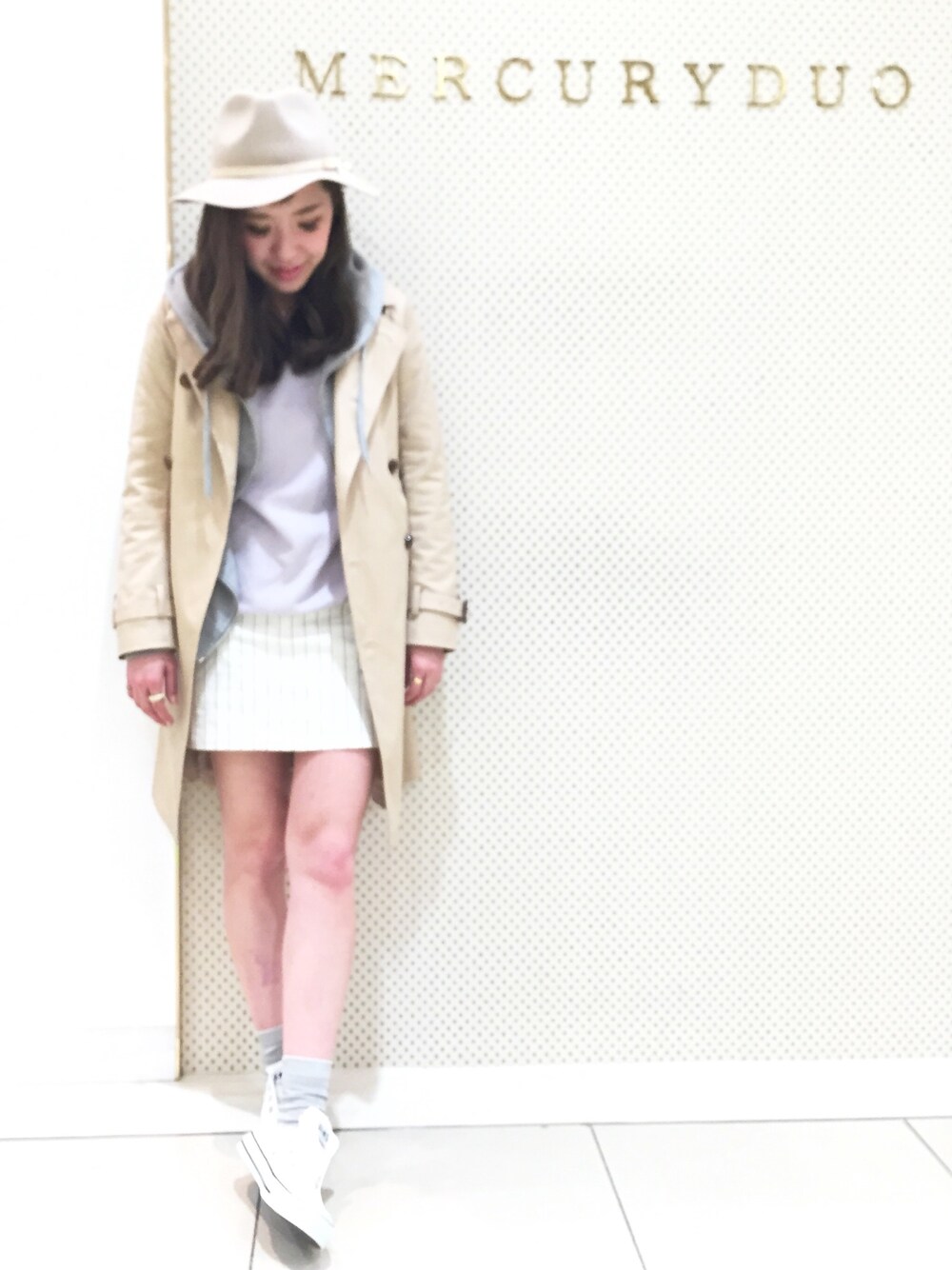 今日の通勤コーデ。 朝は雪が降っていたけど家を出る頃には晴れていたのですっかり春の装いに❀ 寒くても着たくなっちゃうトレンチコート♡ さすがに1枚では寒いのでグレーパーカーをレイヤード。 入荷中のALL STARは今季ヘビロテしそうな1足です♡♡