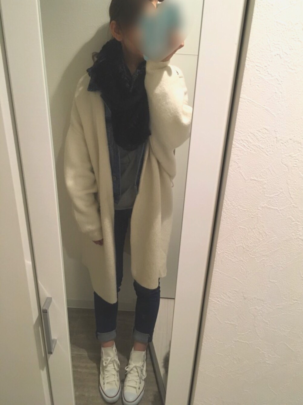 . . . デニムジャケット×ニット まだ、北海道は寒いので重ね着⛄❄ . . .