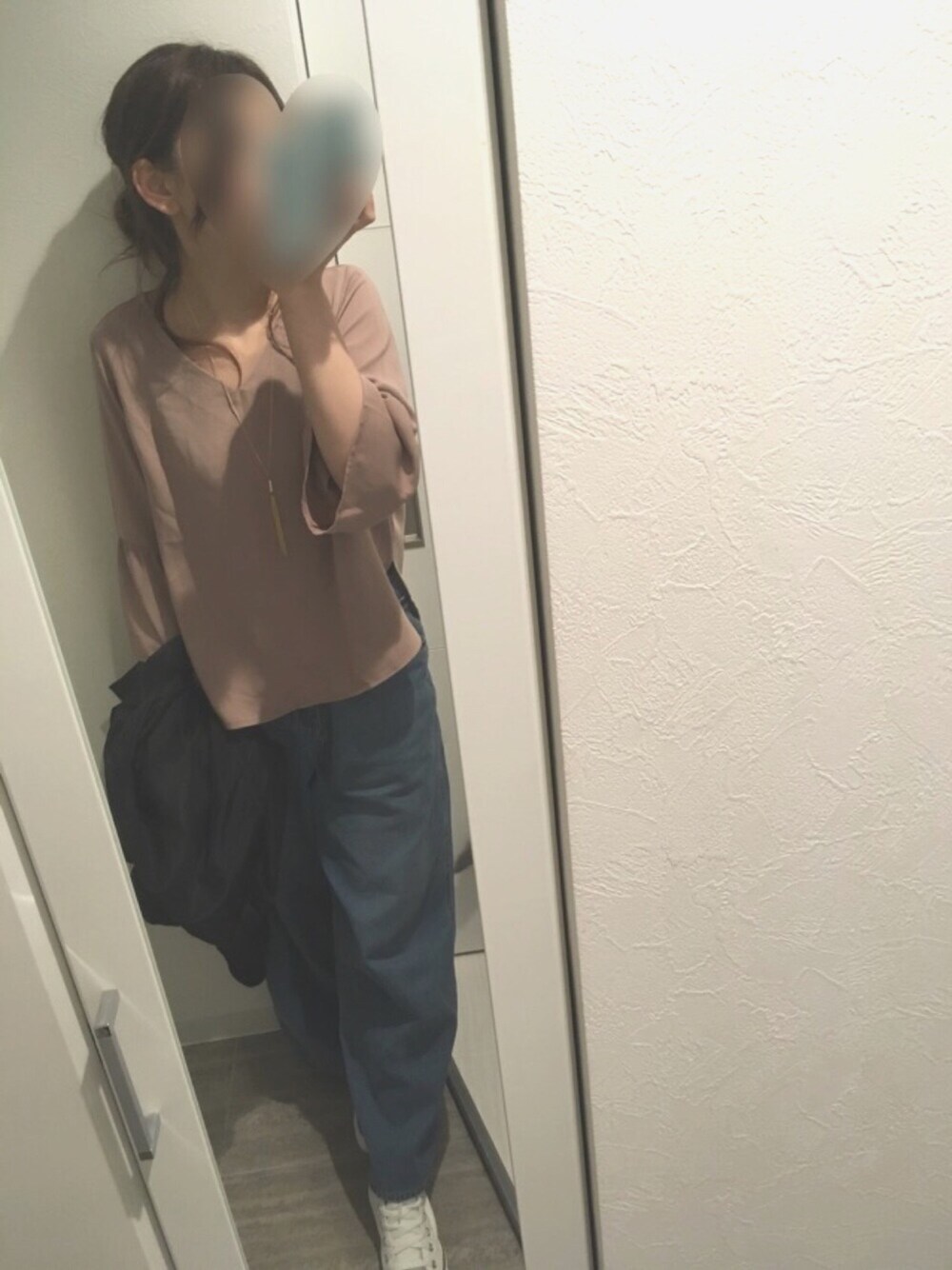 . . . 大人ピンクのキレイめトップスに、デニムとスニーカーを合わせてカジュアルに仕上げました! . . .