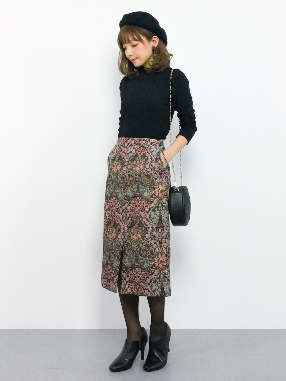 大人カジュアルスタイル ;) こちらのスカートは、何と言ってもゴブランデザインが可愛い、、★ タイトスカートなので、取り入れやすさも◎