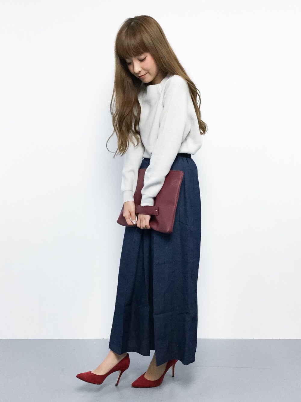 大人カジュアルコーデ ;) ボルドーのヒールとクラッチを合わせて、秋らしく◎
