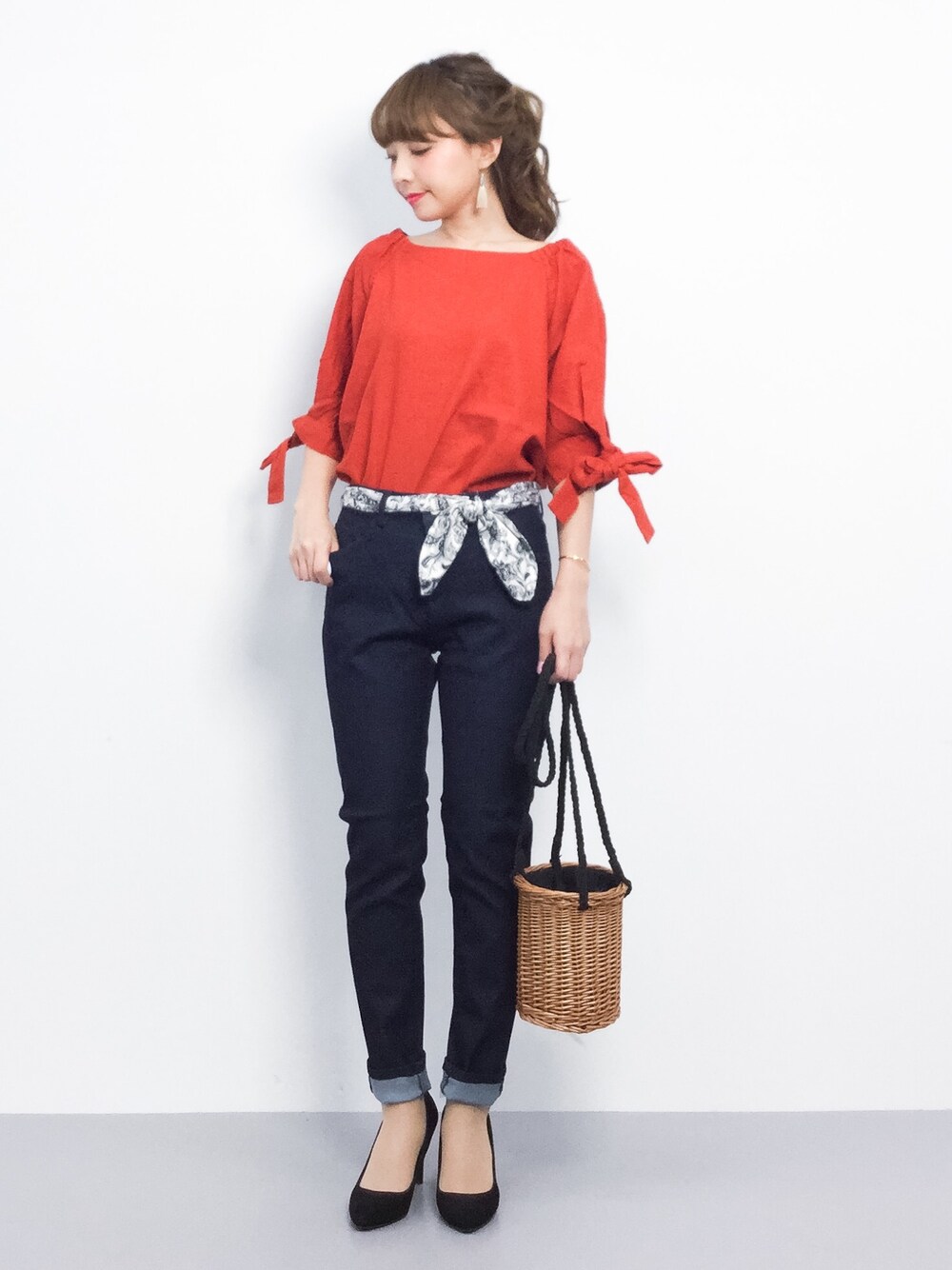 ayumi sato のシャツ/ブラウス「【LEE 8月号掲載】【MORE 7月号掲載】 レーヨンリネンオフショルダーブラウス」を使ったコーディネート