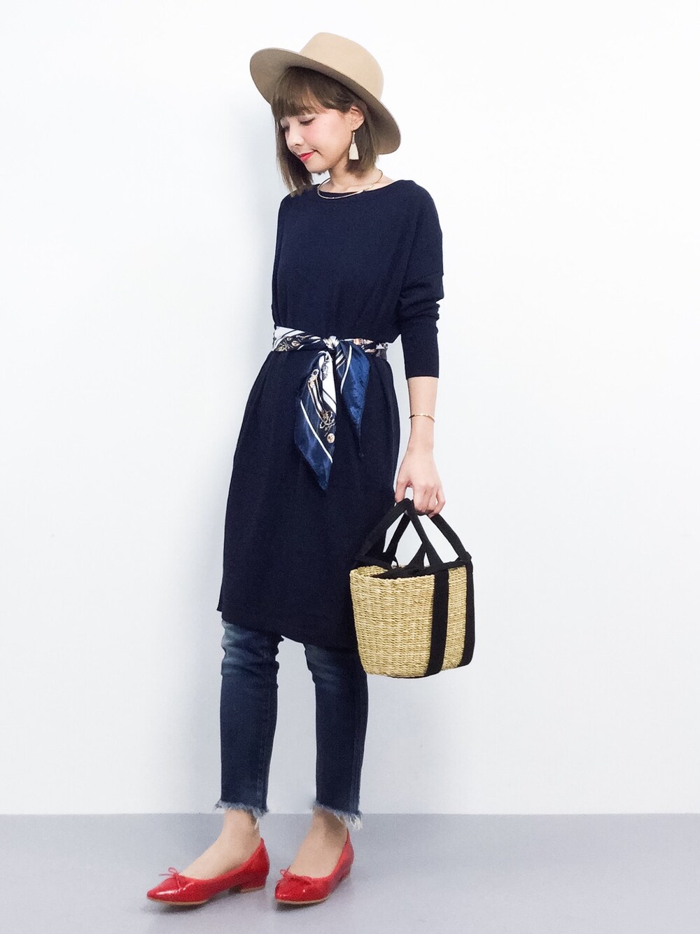 ayumi sato のワンピース「【洗濯機で洗える】前後2wayニットカーディガンワンピース」を使ったコーディネート