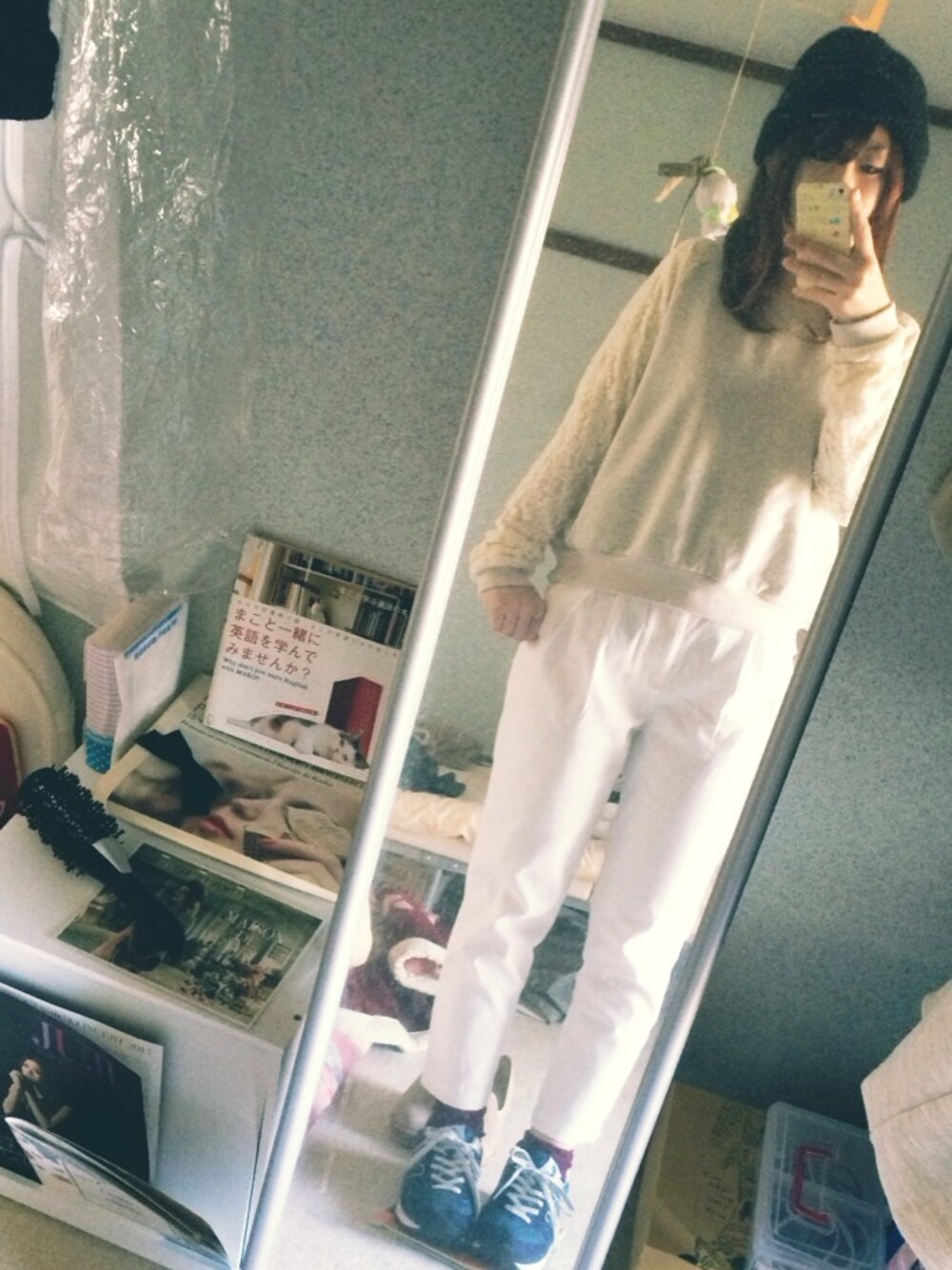 スウェットトップスは袖がレース(^ν^) mysticコーデ*\(^o^)/*