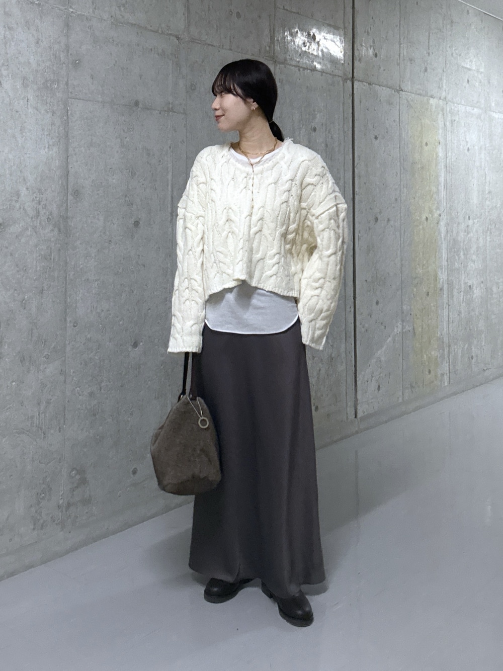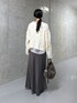 ⭐︎ニット 衿ぐりに施したフリンジデザインが華やかさをプラス。Uネックの衿ぐりが、デコルテをすっきりとみせてくれます! ゆるっとしたシルエットなので、着丈を短めにすることでバランスを取りやすいです。 シャツや、カットソーとのレイヤードもオススメです! ⭐︎インナー テンセルにカシミヤとシルクをブレンドした素材を使用した、肌触りが柔らかで気持ちいいカットソー。コンパクトですがぴったりしすぎないサイズ感です。カーブをつけた裾のシルエットや後ろ中心のステッチも可愛く、インナーとしてはもちろん、1枚でも様になるカットソーになっております。 ⭐︎スカート 38サイズ。 ドレープ性と膨らみを併せ持ち、程よく体に馴染むためスタイルアップ効果も◎ バイヤスフレアで汎用性の高いスカート。 裾にかけての揺れ感が大人の抜けを演出してくれます。コートやダウン、ヘアリーなニットでも何にでも合わせやすくオンオフ使用可能です!