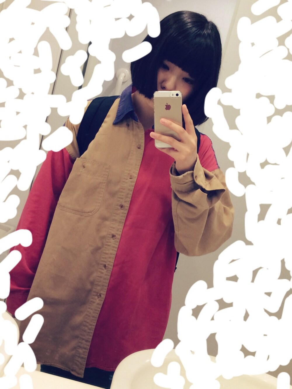 シャツ:古着(1500円) パンツ:レギンスパンツ(GU) リュック:ふわふわにゃーリュック(Ne-net) パンツ見えんけど、 新しく下北で買った、シャツ お仕事でした、、、。