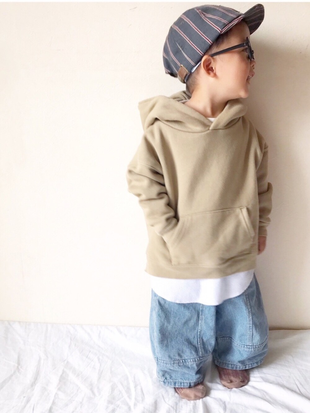 *𝙰𝙽𝚂_𝙼𝙴*のパーカー「WEB限定 KIDS ビッグシルエット サーマルレイヤード プルオーバーパーカー」を使ったコーディネート