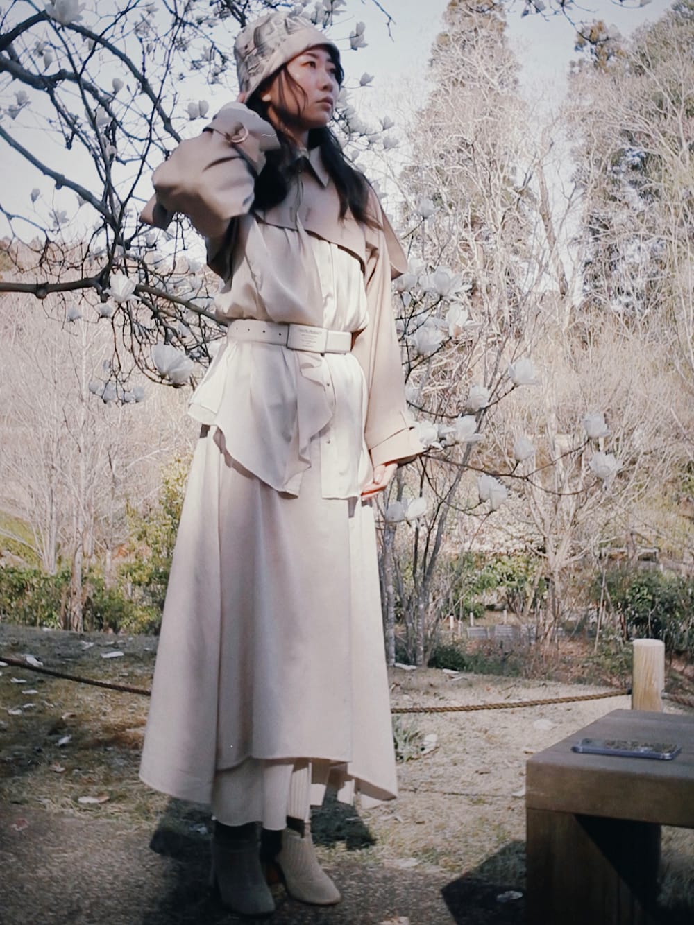ハクモクレン散歩。一目惚れして買ったPATOUの帽子、スタイリングが難しかった。