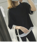 床のTシャツ/カットソー「レイヤード風半袖無地ミドル丈クルーネックTシャツカットソー」を使ったコーディネート