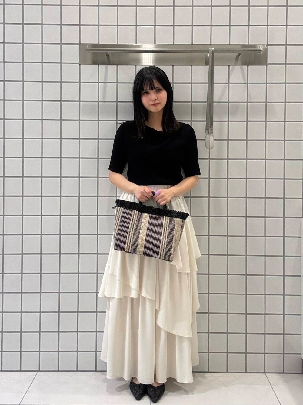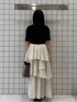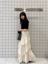 夏にふわっとスカートコーデ🏰💫 ゆらゆら揺れる白いスカートが人目を惹きます☁🫧 スカートにボリュームがあるので、 トップスはジャストサイズにすることでメリハリが生まれすっきりします✨ ウエストがゴム素材なのでゆったり着用できます🍀
