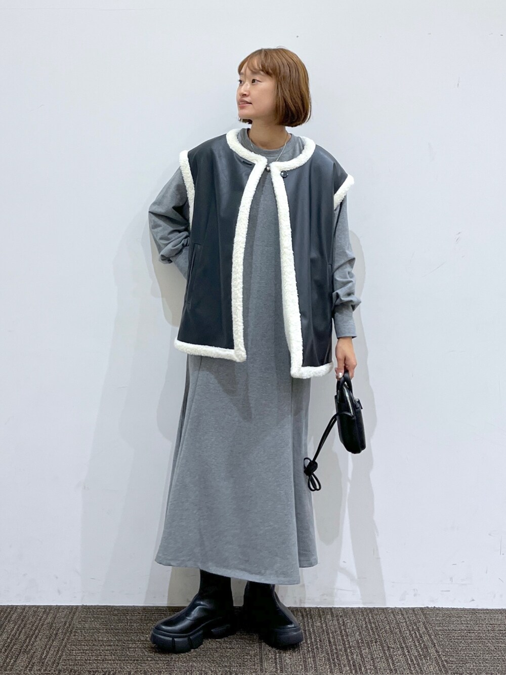 マーメイドシルエットのワンピースに リバーシブルで着れるベスト🖤☁︎ リバーシブルのベストは両面にポケットがしっかり付いています◎