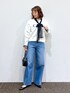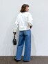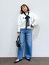 トレンドのボウタイブラウスをレイヤードしました🖤🤍 スウェットは丈感がスッキリしてます🥹 デニムは裾に向かって広がるバギーデニム👏ワイドシルエットがとてもカッコ良い!