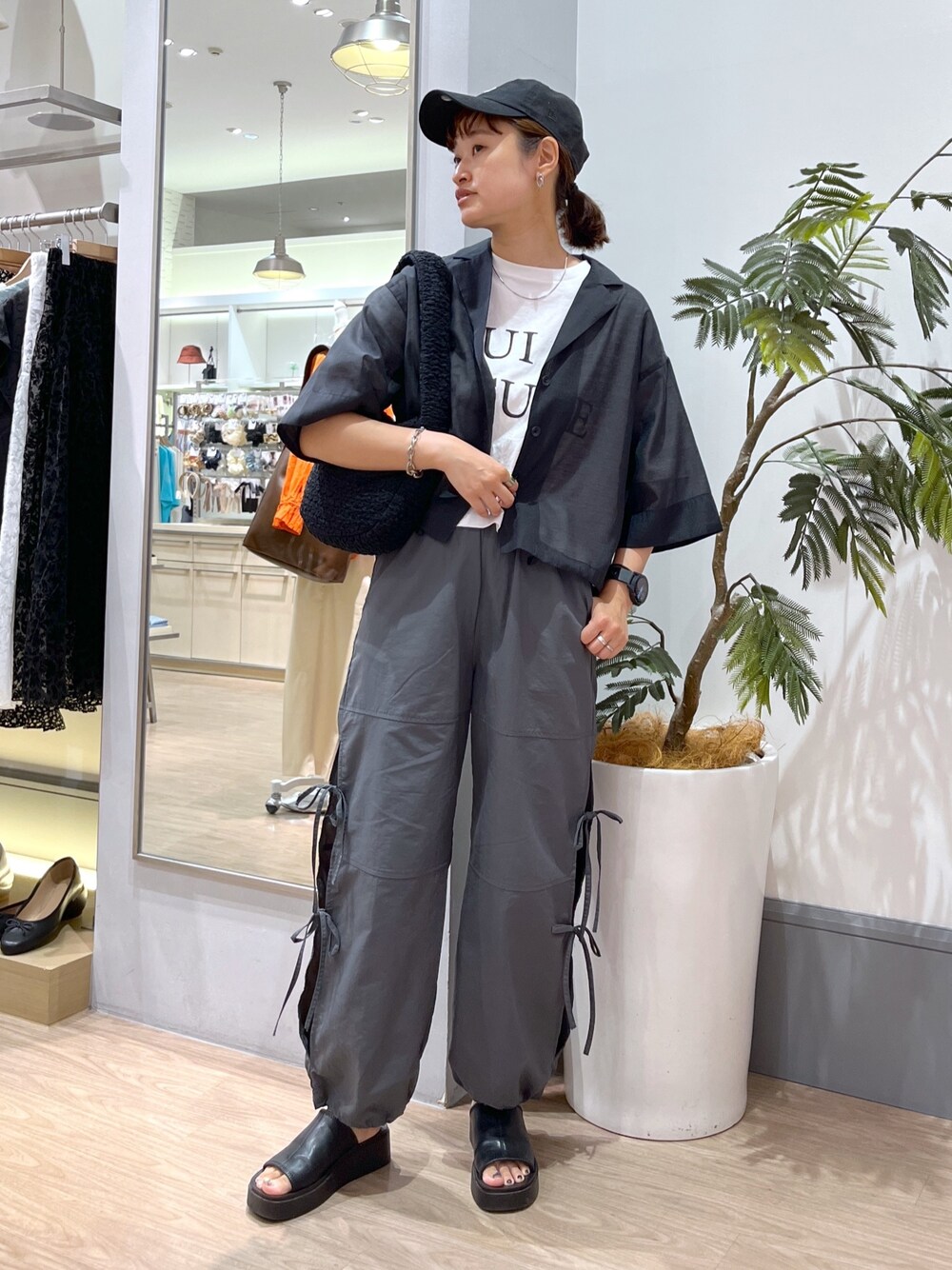 モノトーン🖤🖤🖤 シャツは裾が絞れるドロスト付き☝️