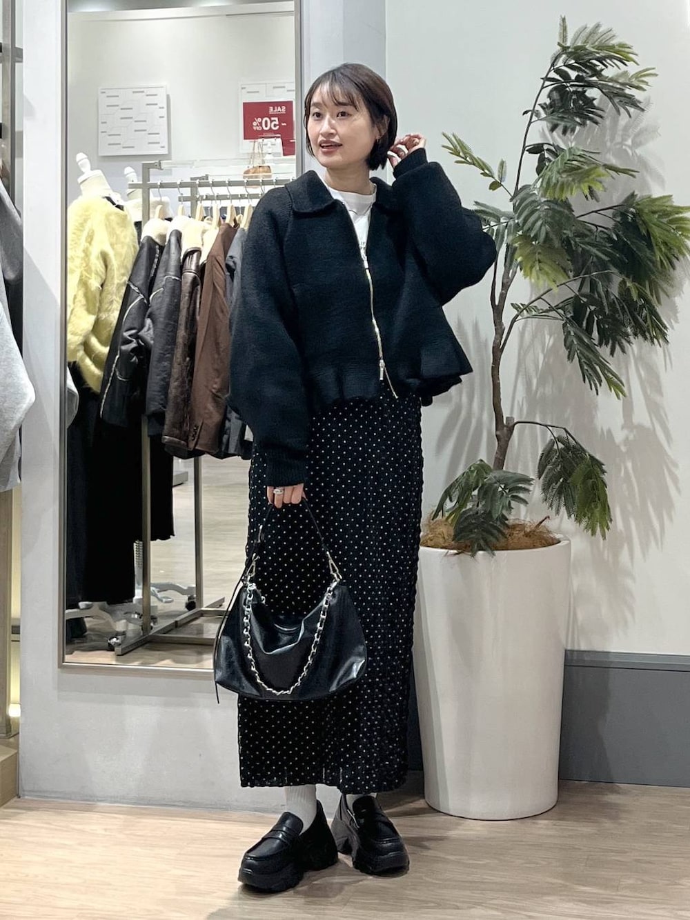 ニットアウターは裾フリルがポイント! ダブルジップなのもポイントです◎ スカートはタイトシルエットでスッキリ見えする! 柔らかい素材で履きやすくウエストゴムでゆったり 履けます♪♪ SAKOの Instagram wear