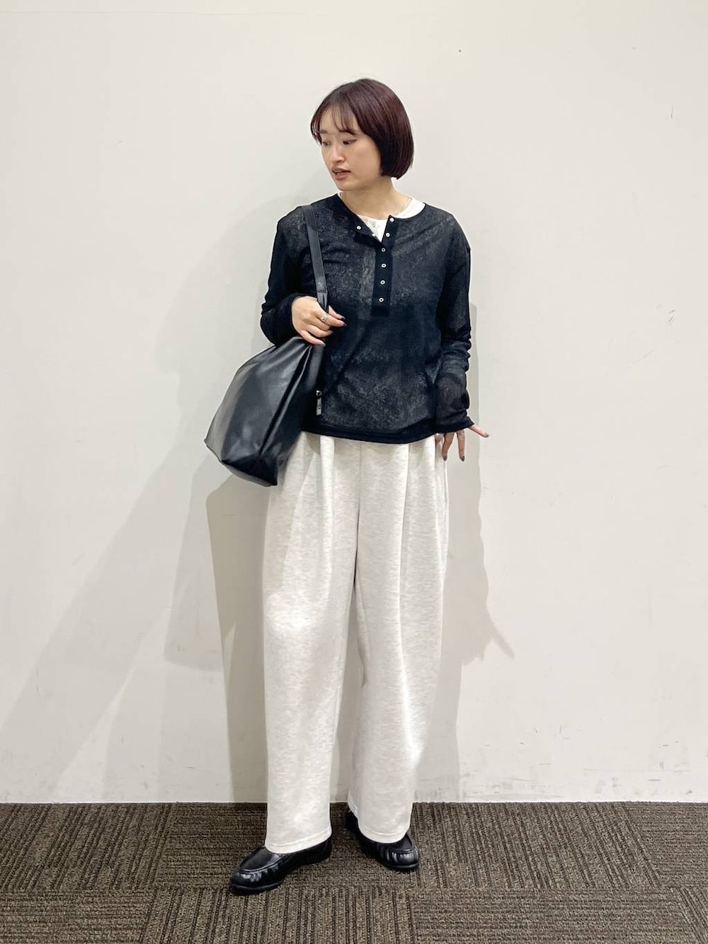 透け感があるトップスはサイズがあって 重ねて着ると今年らしく合わせれます◎スッキリとしたサイズ感♪♪ パンツはウエストゴムでゆったり履けます! シルエットが綺麗! SAKOの Instagram wear