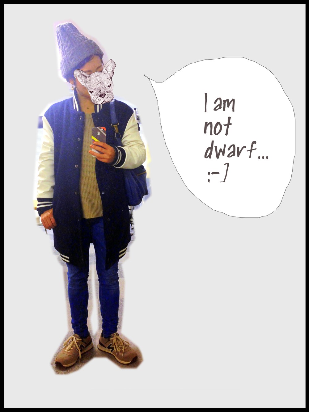 ロングスタジャンはdholic ニットはnano universe ニットキャップはHIGHLAND2000 髪をコンパクトにまとめてニット帽=小人さんですか?
