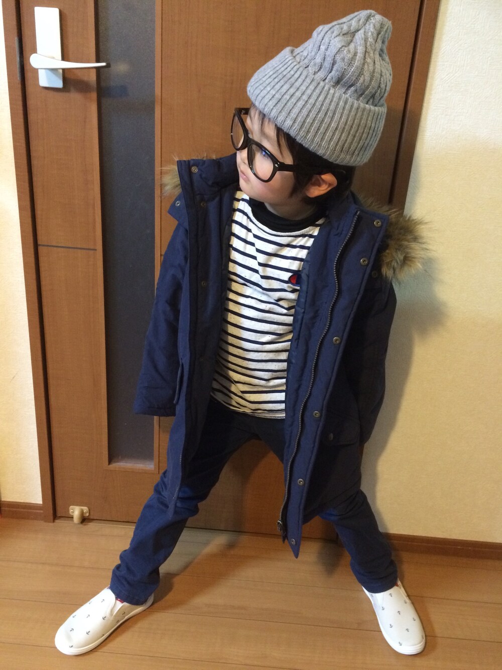 休日プチプラコーデ☆ ニットキャップはママの♡ アウターとシューズは 今日g.uで買ってきた♪ 2つとも990円‼︎ 暖冬だからアウターなかなか売れないのかなぁ?