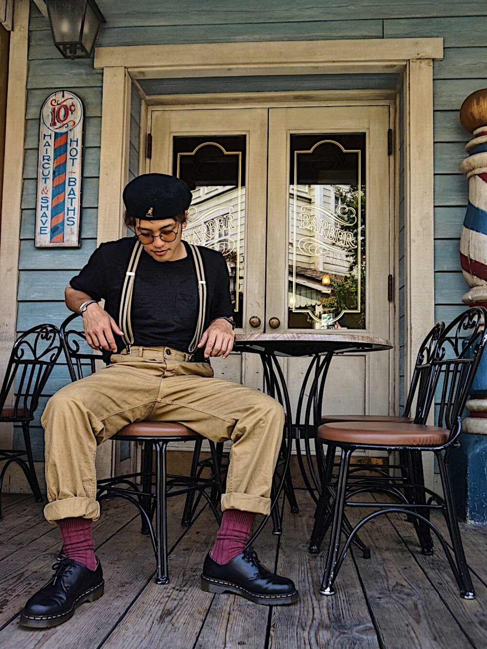 シンプルな黒Tにサスペンダースタイル‼︎ 誕生日プレゼントで、ドクターマーチンをもらいました(^^) 履きまくります🎶