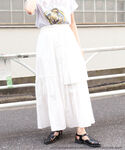 カーディガンはボタンがハートになっていて可愛い♡ 白いスカートはアシメデザイン!