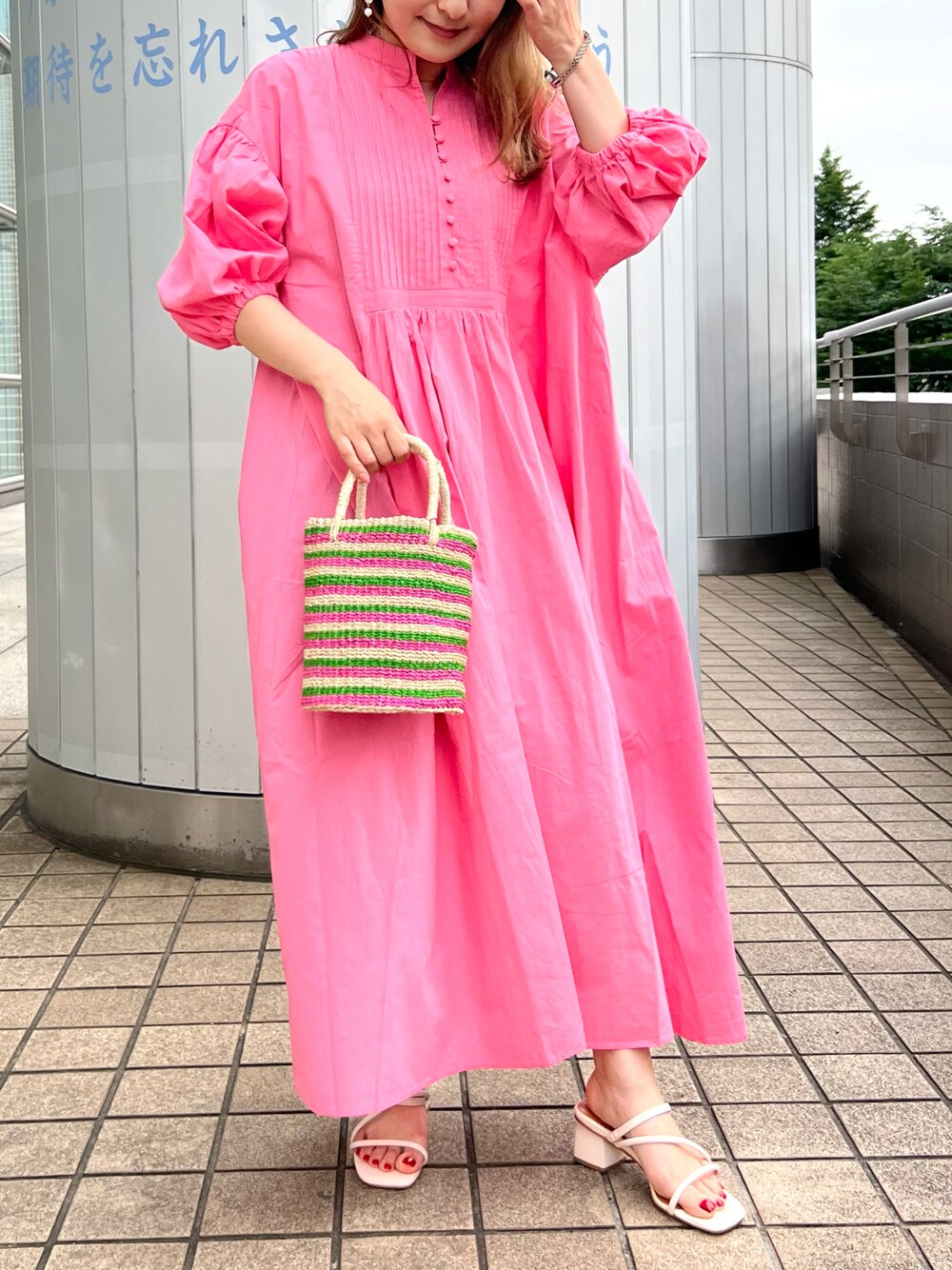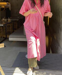 袖のボリュームがポイントのワンピース♡華やかなピンクも可愛い♡