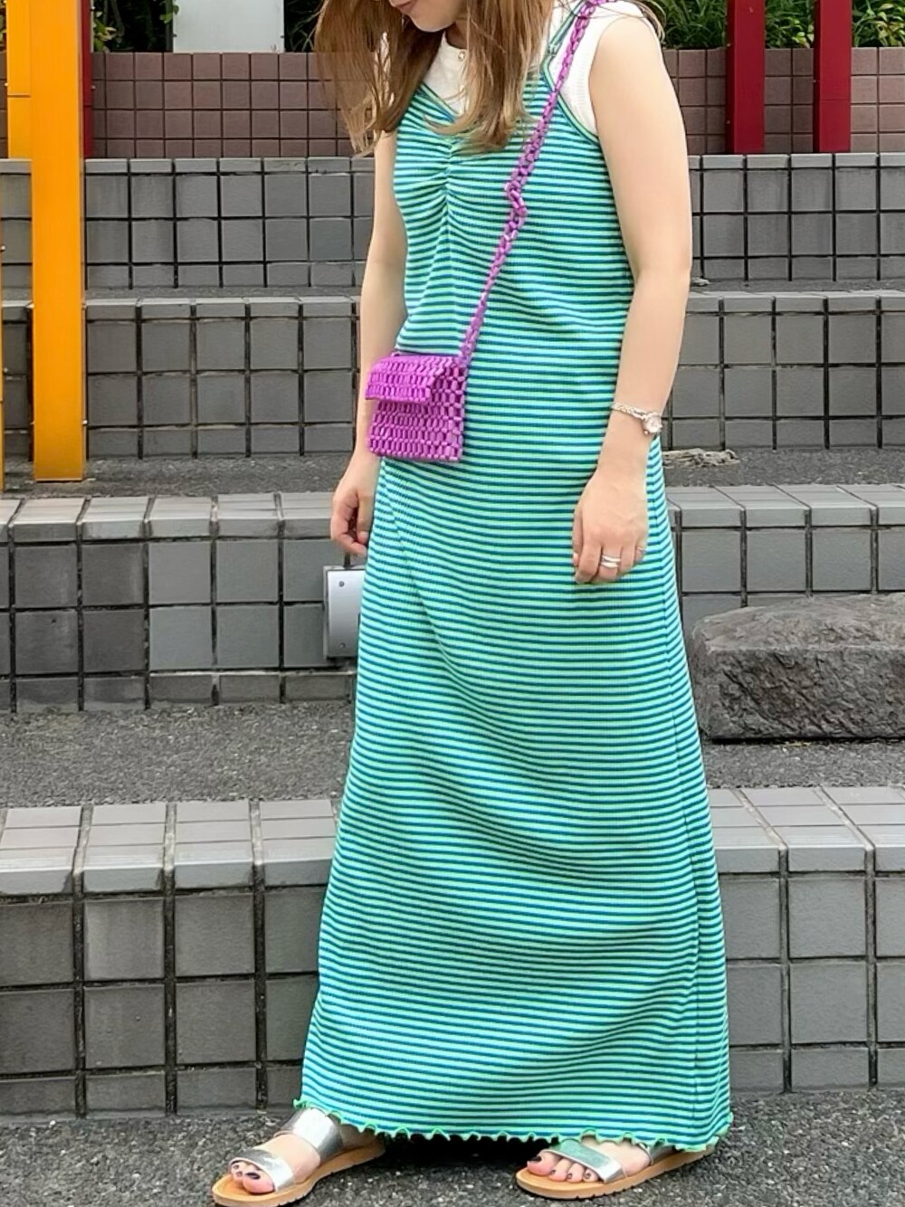 Uchino.150cm(FREDY&GLOSTER アウトレット横浜ベイサイド店)のワンピース「ボーダーリブタイトキャミワンピース」を使ったコーディネート