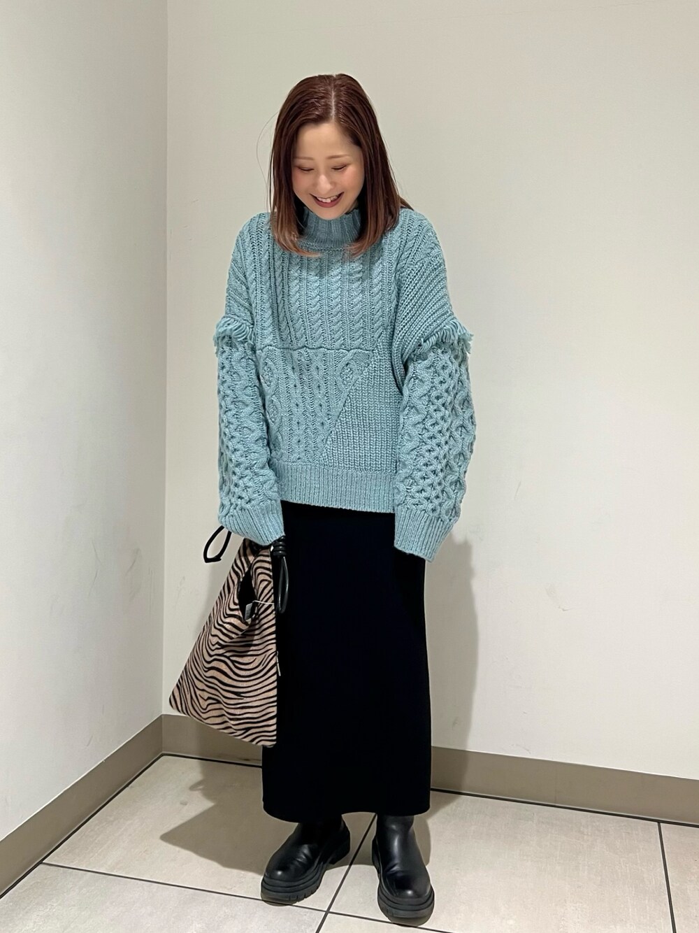 Uchino.150cm(FREDY&GLOSTER アウトレット横浜ベイサイド店)のニット/セーター「柄編みフリンジハイネックニット」を使ったコーディネート