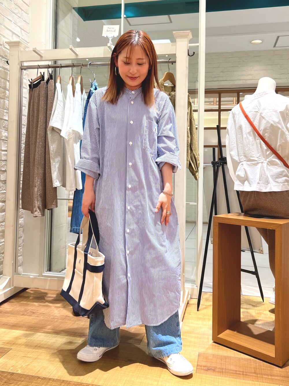 Uchino.150cm(FREDY&GLOSTER アウトレット横浜ベイサイド店)のシャツワンピース「【GEVACO/ゲバコ】タイプライターバンドカラーL/Sワンピース」を使ったコーディネート