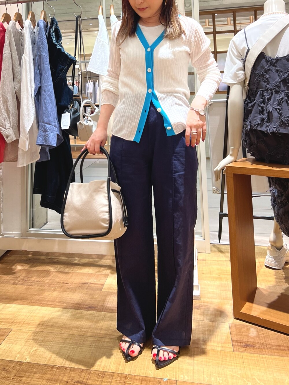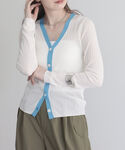 Uchino.150cm(FREDY&GLOSTER アウトレット横浜ベイサイド店)のカーディガン/ボレロ「ワイドリブ配色シアーカーディガン」を使ったコーディネート