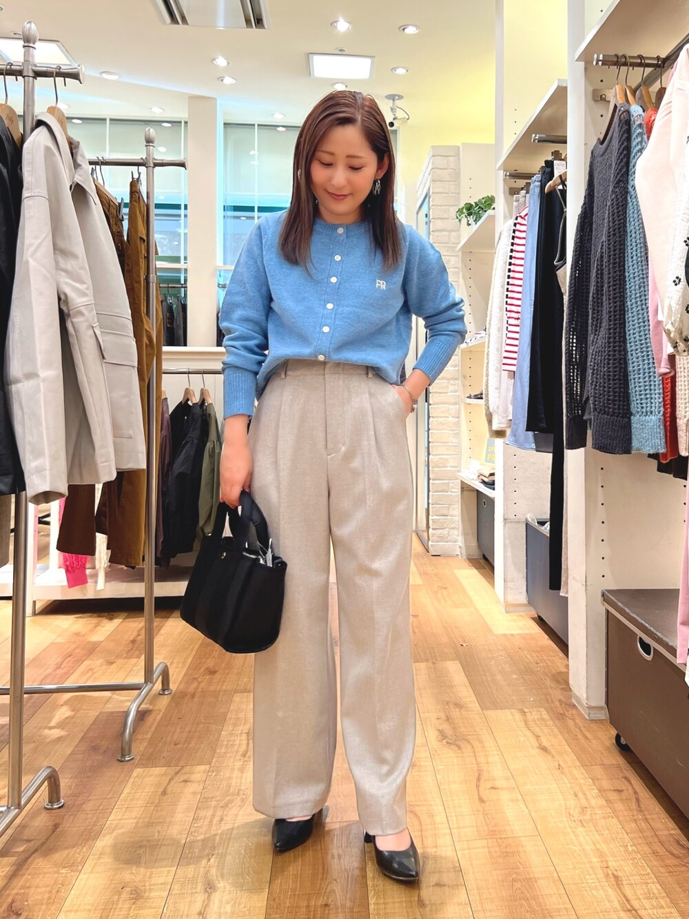 綺麗なブルーのカーディガン♡ スラックスと合わせてお仕事でも使えるキレイめコーデ
