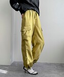 定番の白黒ボーダーにカラーパンツを合わせて♡ とろみ素材のベーカーパンツはきれいめにも使えてオススメです♡
