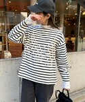 Uchino.150cm(FREDY&GLOSTER アウトレット横浜ベイサイド店)のTシャツ/カットソー「袖ドット釦ボーダープルオーバー」を使ったコーディネート