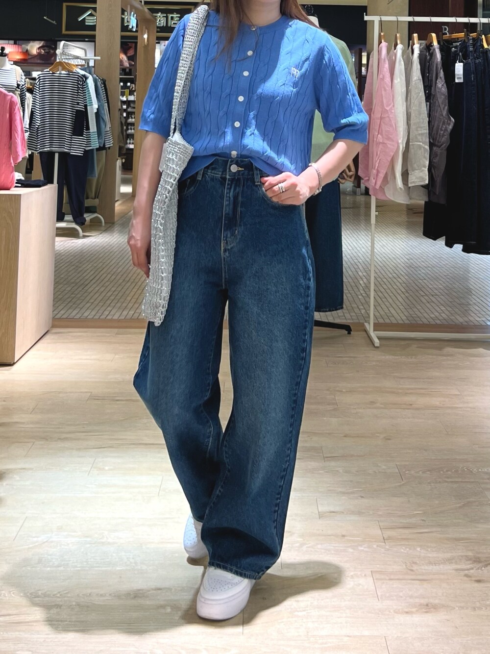 Uchino.150cm(FREDY&GLOSTER アウトレット横浜ベイサイド店)のデニムパンツ「ウエストアジャストワイドデニムパンツ」を使ったコーディネート