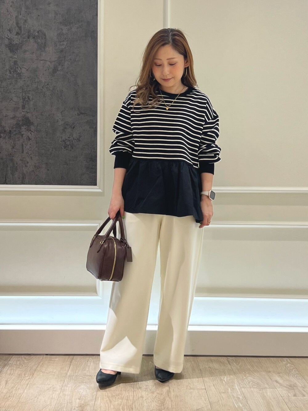 Uchino.150cm(FREDY&GLOSTER アウトレット横浜ベイサイド店)のハンドバッグ「レザースクエアボストンバック」を使ったコーディネート