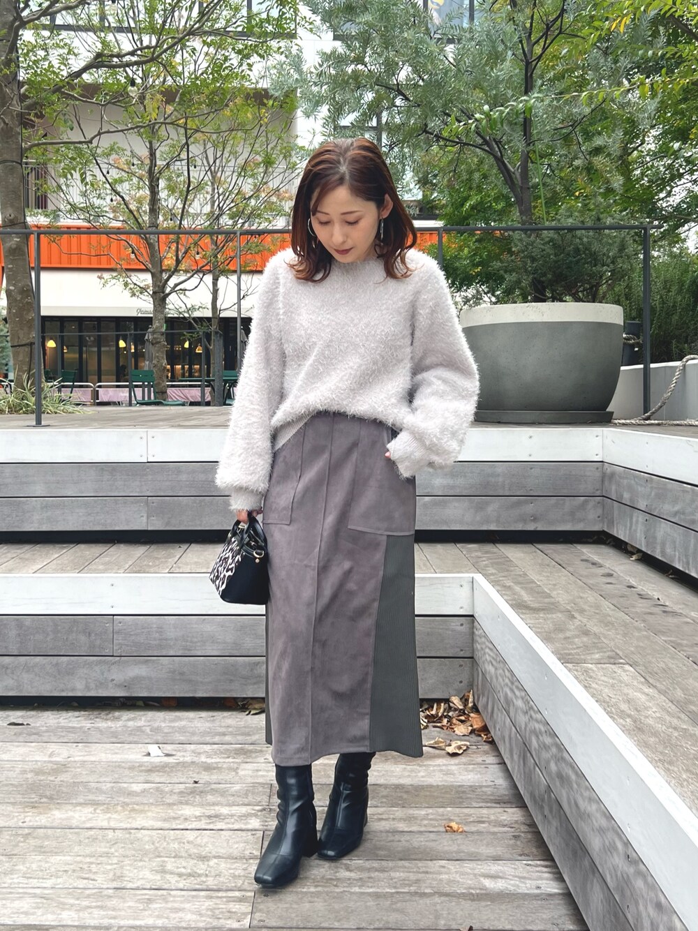 Uchino.150cm(FREDY&GLOSTER アウトレット横浜ベイサイド店)のスカート「《セットアップ対応》スエード×リブワークスカート」を使ったコーディネート