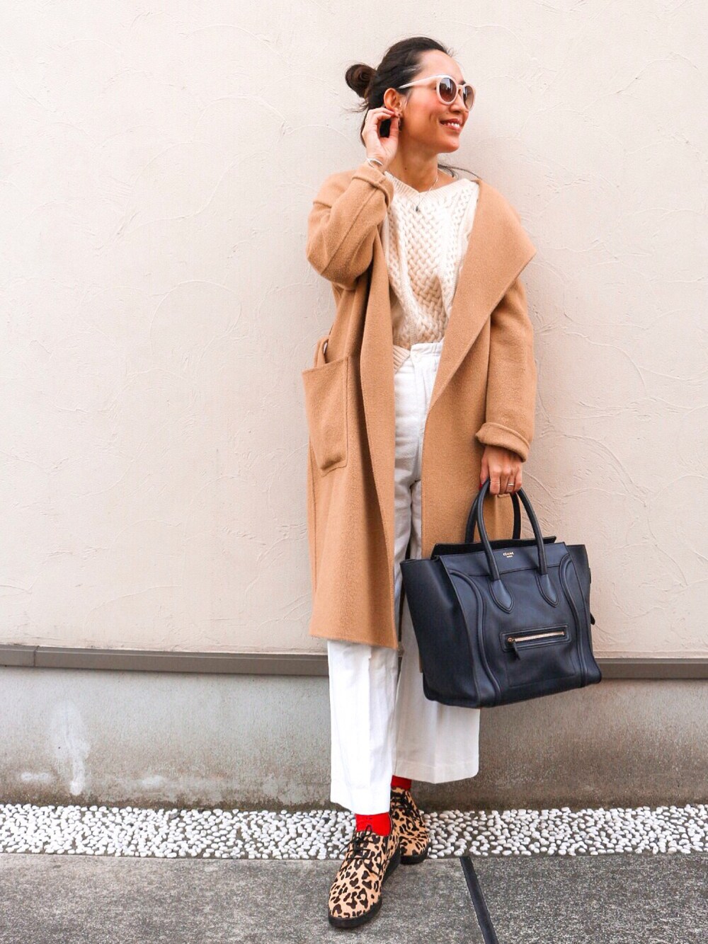 ホワイトのワントーンCODE. 今年初のウールのコートを着用しました❤️🐪 instagram→@ayuuu_mam