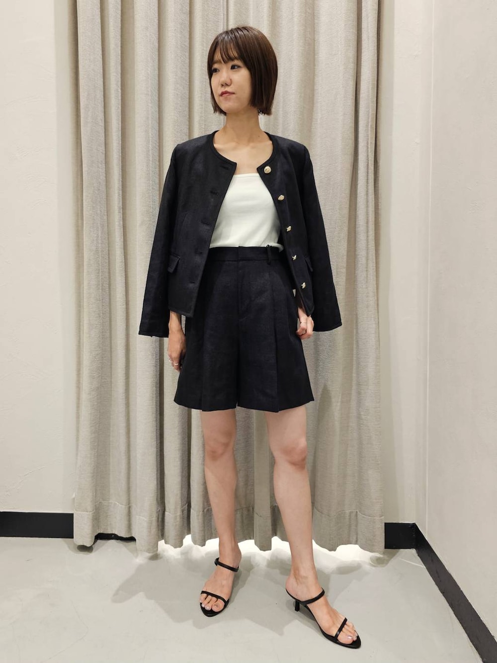 店頭でも残りわずか! 秋まで着れる人気のリネンジャケット⭐ ❏ジャケット 麻100%で通気性の良いジャケット。 スコシ短めの丈感でワンピース等と合わせても丁度よいです! ゴールドボタンで品が良く、キレイめ見えします😊 デニムなどと合わせてもキレイめカジュアルで使えるので1着あると便利ですよ✨ 麻100%なので敏感肌の方は半袖できると若干チクチク感がします。(個人的に裏地が無いのでちょっとチクチクしました) ※普段は1サイズですが店頭完売のため0サイズ着用しております。ただ、思ったよりもきつすぎず、ジャストサイズできれいめに着たい方は0サイズでも良いかもです! ❏インナー 個人的にオススメのきれいめ見えするベアトップ✨ リアエルバイでブラック購入しました😉 デコルテラインが綺麗に見えて、タンクトップだとカジュアルっぽくなってしまうと言う時に使えます! ただ若干ストラップが緩いので、普段0サイズさんは少しストラップが浮くかと思います💦 ❏パンツ こちらも麻100%! 夏は暑いので、白をリアルバイしました⭐ 程よいフレアのシルエットできれいめなので、子供っぽくならずに履けます!