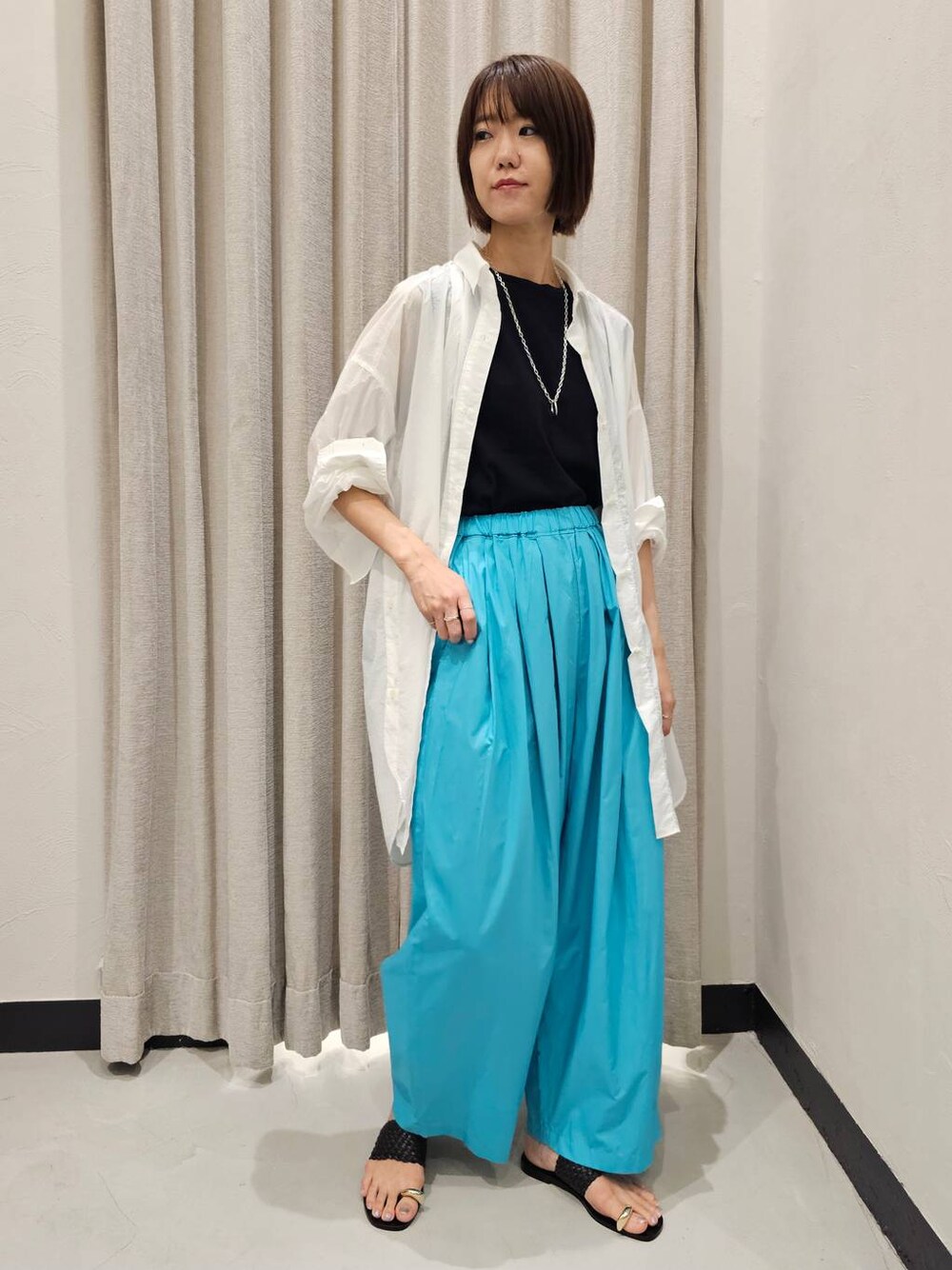 ❏シャツ 軽さにびっくりのナイロンシャツ✨ 白は透け感があるので、長袖ロング丈でも涼し気な印象に。 ❏パンツ 完売品していたカラーが再登場✨ パキッと夏らしい綺麗なブルーです。 生地も薄くて軽いのでとっても履きやすいです! カーブデニムなどのシルエットがちょっとの苦手…💦 と言うかでもこちらは着やすいですよ😉 Sサイズだと踝が見えるくらいです!