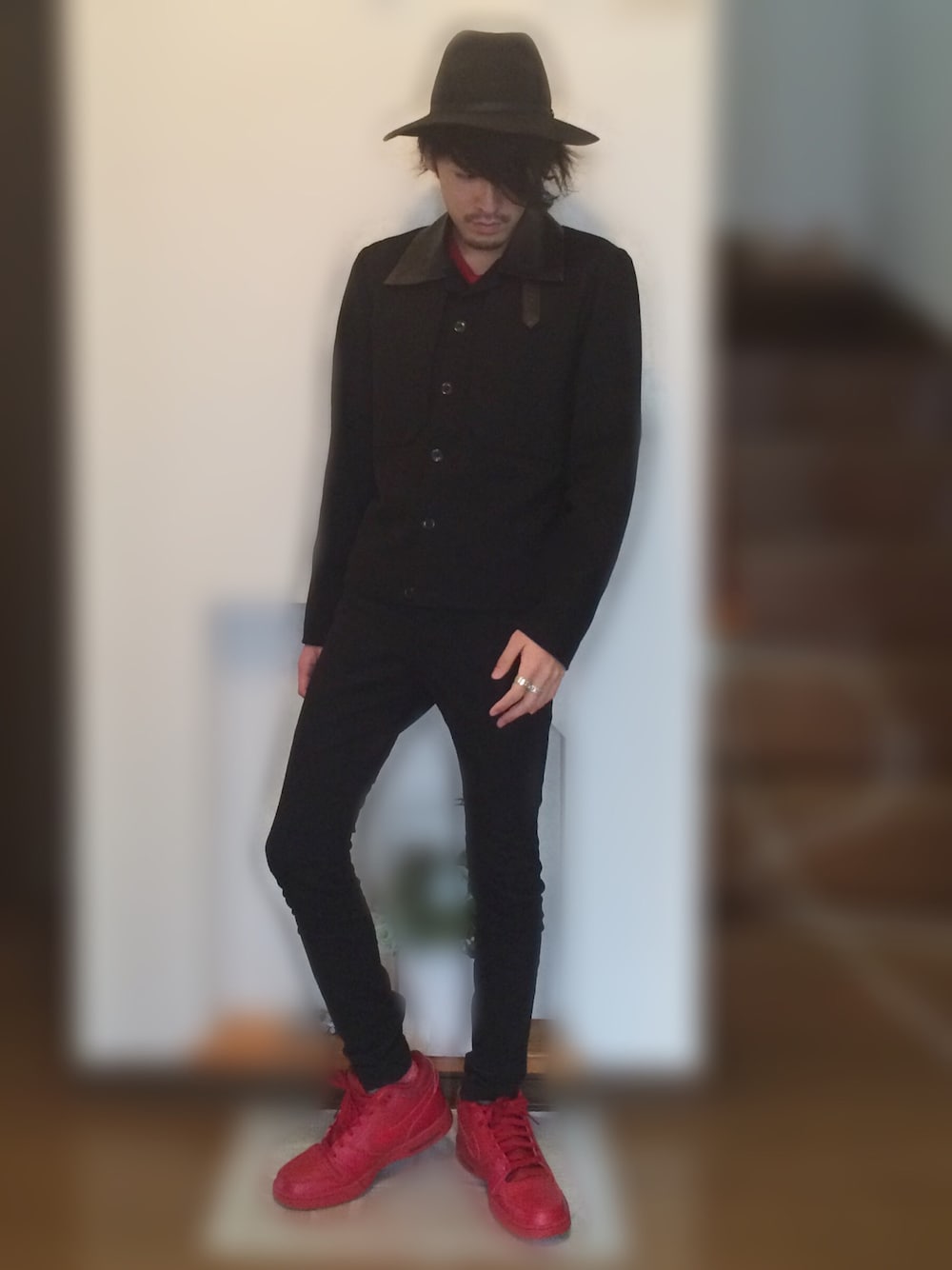 ちょっと遅めのおはようございます🌝🌝 今日は安定の黒×赤٩( ᐛ )و! なんとなくタイトに✨ 昨日、講演会行ったとき他の研究室の教授に合いまして! その人スーツ着てたんですけど、靴が瞬足みたいなスニーカーでして😞😞😞 あー、こうはなりたくないなーと。 もういい大人なんだからね、、、 どーでもいいけど写真に掃除機のコード、がっつり写っちゃってます😱