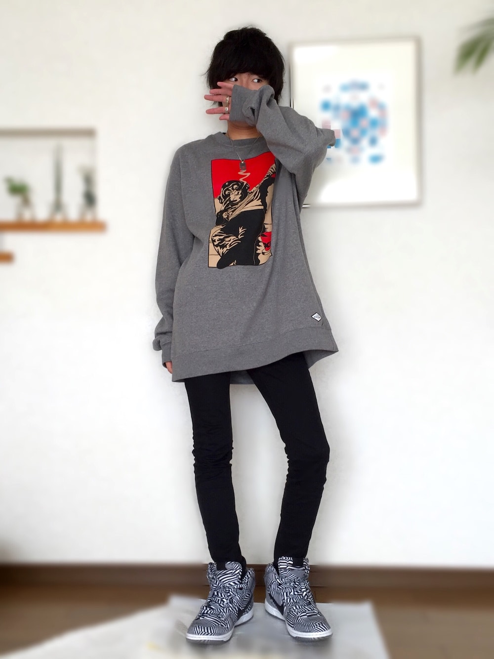 アザミのスウェット「SHORTY CREW NECK SWEAT」を使ったコーディネート