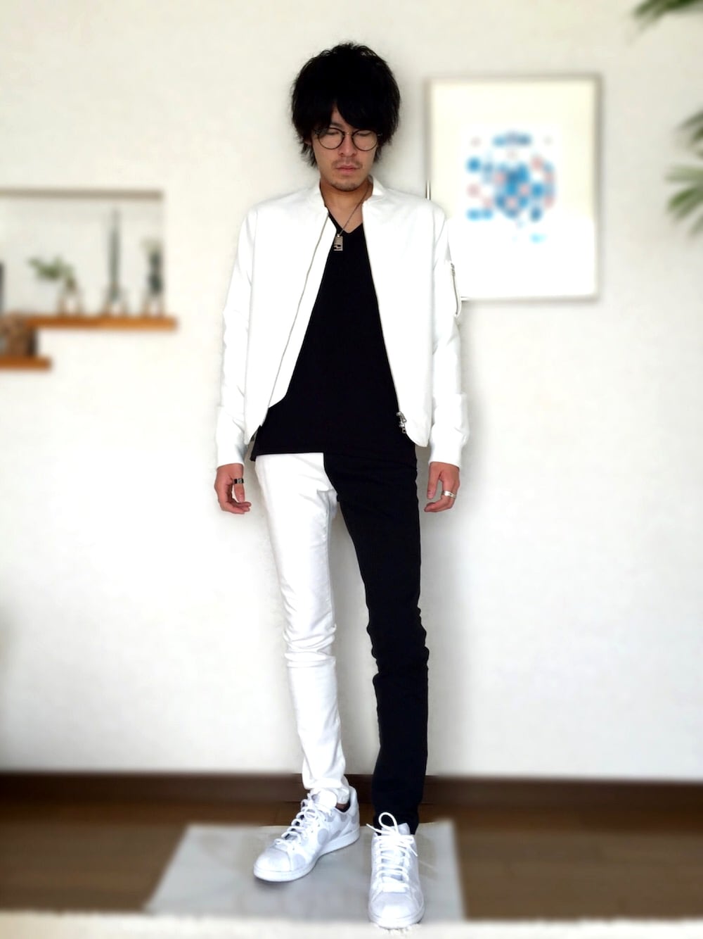 アザミのブルゾン「WL ポリエステル ホワイト リブ ブルゾン◆」を使ったコーディネート